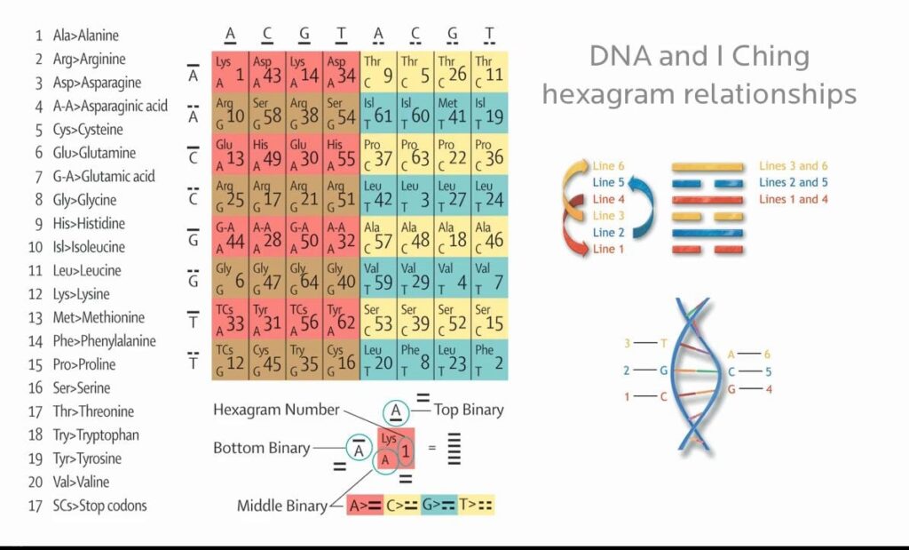 เมื่อหลายพันปีก่อน ปราชญ์จีนโบราณได้คิดค้นระบบ อี้จิง (I Ching) ที่ประกอบด้วย 64 ขีดลักษณ์ (Hexagrams) เพื่ออธิบายการเปลี่ยนแปลงของสรรพสิ่ง ต่อมาในทศวรรษที่ 1950 วิทยาศาสตร์สมัยใหม่ได้ค้นพบว่า รหัสพันธุกรรม (Genetic Code) ของมนุษย์เราก็ประกอบด้วย 64 ชุดคำสั่ง (Codons) เช่นเดียวกัน